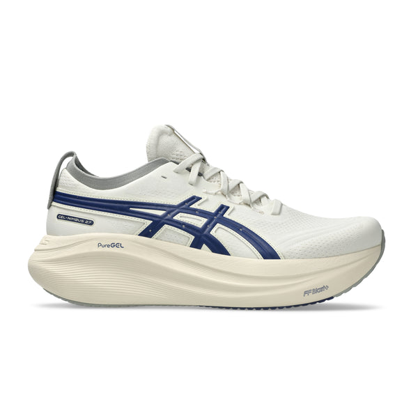 The GEL-NIMBUS® 27 shoe's soft cushioning properties help you feel like you're landing on clouds. This design is revamped to help create a softer and smoother running experience.