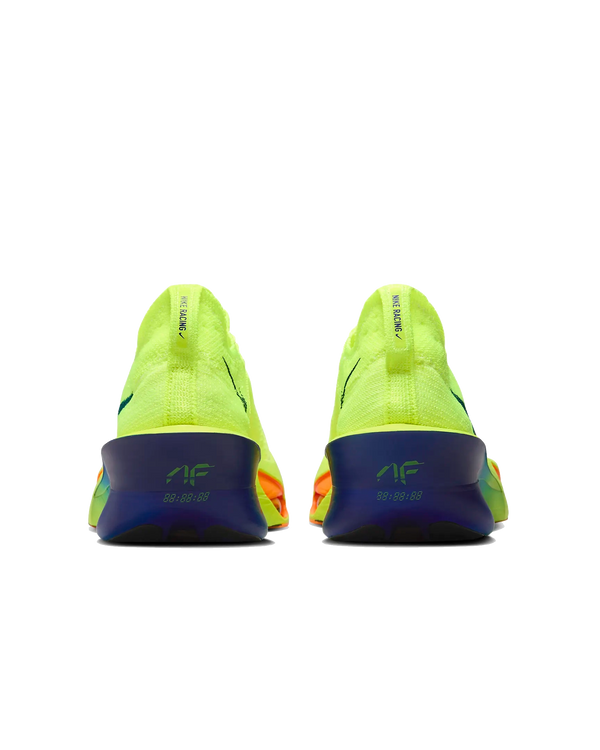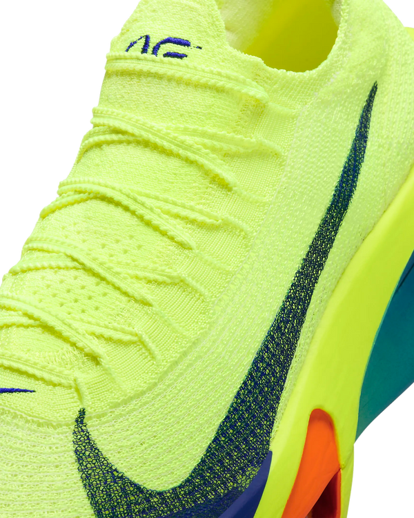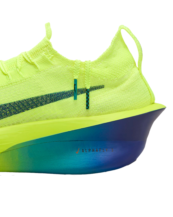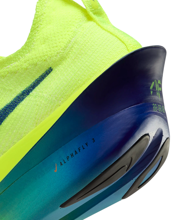 Fine-tuned for marathon speed, the Alphafly 3 helps push you beyond what you thought possible. Three innovative technologies power your run: Engineered to the exact specifications of championship athletes, a double dose of Air Zoom units helps launch you into your next step; a full-length carbon fiber plate helps propel you forward with ease; and a heel-to-toe ZoomX foam midsole helps keep you fresh from start to finish. Time to leave your old personal records in the dust.