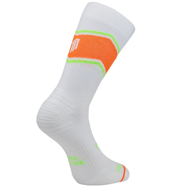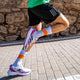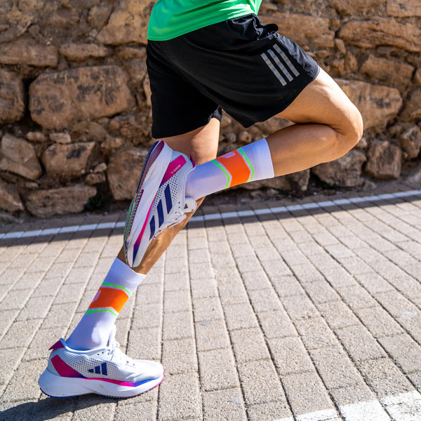 Running socks with greater support in the ankle and metatarsal areas. They offer a medium level of compression that helps blood circulation and reduces inflammation in longer runs. The heel and toe are made of COOLMAX® terry cloth to minimize impact, creating a greater sensation of comfort and breathability. They prevent and avoid the appearance of blisters.