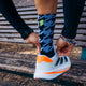 Running sock with greater support in the ankle and metatarsal area. It has a medium compression level that helps blood circulation and reduces inflammation during longer runs. The heel and toe are made of COOLMAX® terry cloth to minimize impact, creating a greater feeling of comfort and breathability. Prevents and prevents the appearance of blisters.