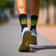 Running sock with greater support in the ankle and metatarsal area. It has a medium compression level that helps blood circulation and reduces inflammation during longer runs. The heel and toe are made of COOLMAX® terry cloth to minimize impact, creating a greater feeling of comfort and breathability. Prevents and prevents the appearance of blisters.
