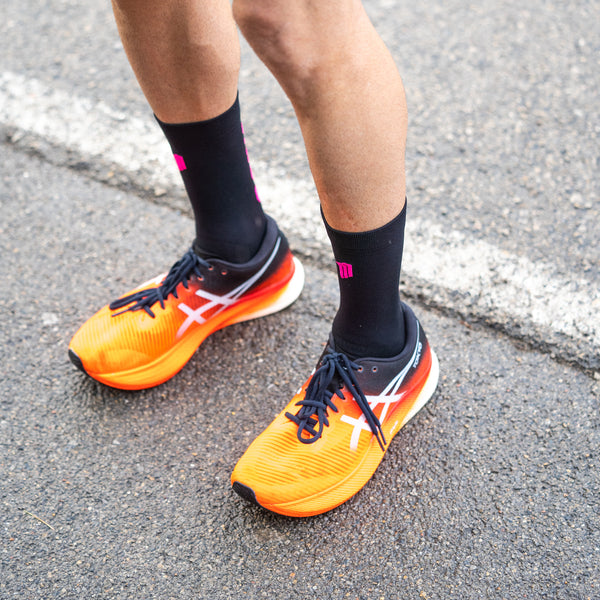 Sporcks high quality sock with extra support around ankle and metatarsus. Soft compression offers relieve and comfort on your long distance races. High ventilation around the foot removes humidity and moisturizes quickly.