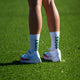 Running socks with greater support in the ankle and metatarsal areas. They offer a medium level of compression that helps blood circulation and reduces inflammation in longer runs. The heel and toe are made of COOLMAX® terry cloth to minimize impact, creating a greater sensation of comfort and breathability. They prevent and avoid the appearance of blisters.