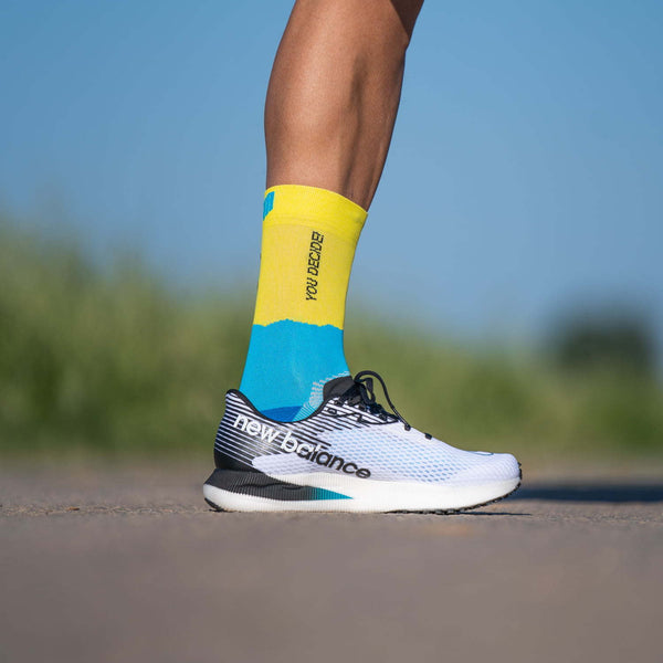 Sporcks high quality sock with extra support around ankle and metatarsus. Soft compression offers relieve and comfort on your long distance races. High ventilation around the foot removes humidity and moisturizes quickly.