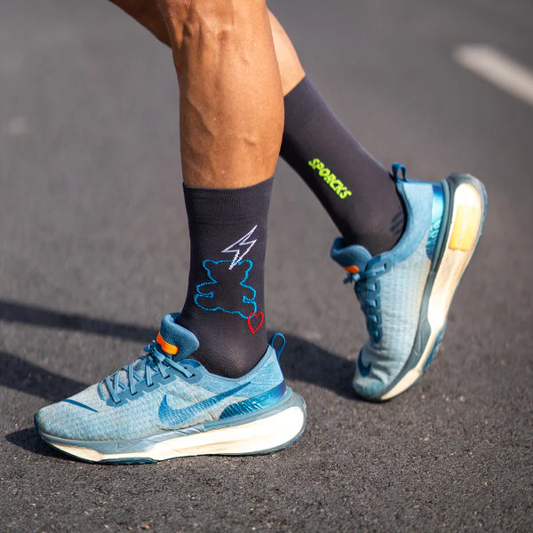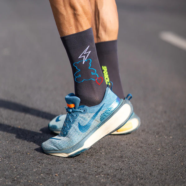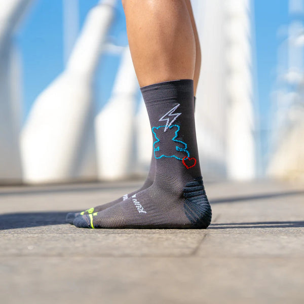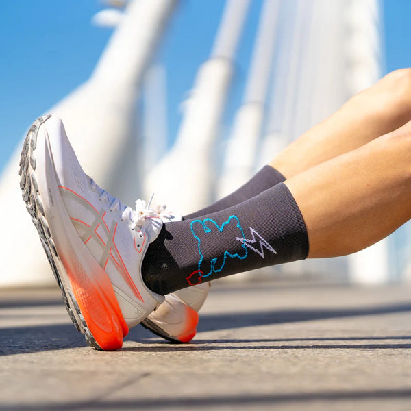 Running sock with greater support in the ankle and metatarsal area. It has a medium compression level that helps blood circulation and reduces inflammation during longer runs. The heel and toe are made of COOLMAX® terry cloth to minimize impact, creating a greater feeling of comfort and breathability. Prevents and prevents the appearance of blisters.