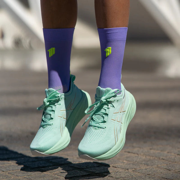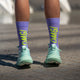 Running sock with greater support in the ankle and metatarsal area. It has a medium compression level that helps blood circulation and reduces inflammation during longer runs. The heel and toe are made of COOLMAX® terry cloth to minimize impact, creating a greater feeling of comfort and breathability. Prevents and prevents the appearance of blisters.